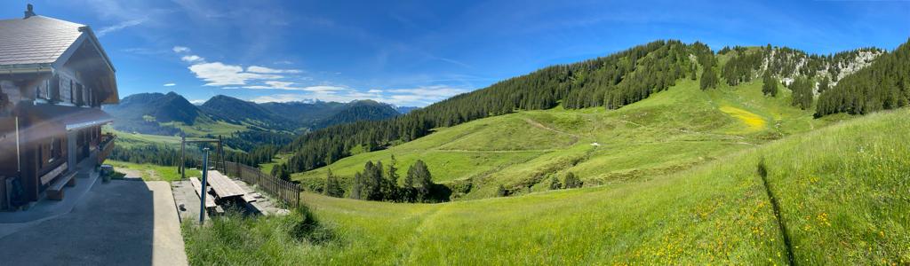 Auf der Alp Guggenen geniesst man zum einen den herrlichen Ausblick. Auf der anderen Seite hat man die mächtige Schrattenfluh im Rücken. Irene und Heinz Schmid, die vor einer Weile die Leitung an die nächste Generation weitergegeben haben, aber immer noch sehr tatkräftig mithelfen, erzählten auch etwas aus dem Nähkästchen des Älplerlebens. So etwa von den vielen schönen Begegnungen, die sie immer wieder erlebt haben. Oder von den Veränderungen über die Jahre bis hin zum Neubau der Alp. Sie freuen sich jeweils sehr über Besucher und Gäste. Dieses Leben auf der Alp hat die Beiden nachhaltig geprägt.
