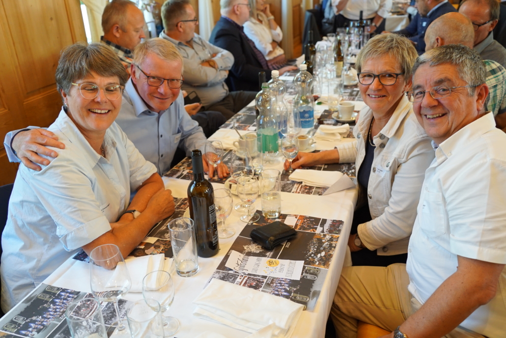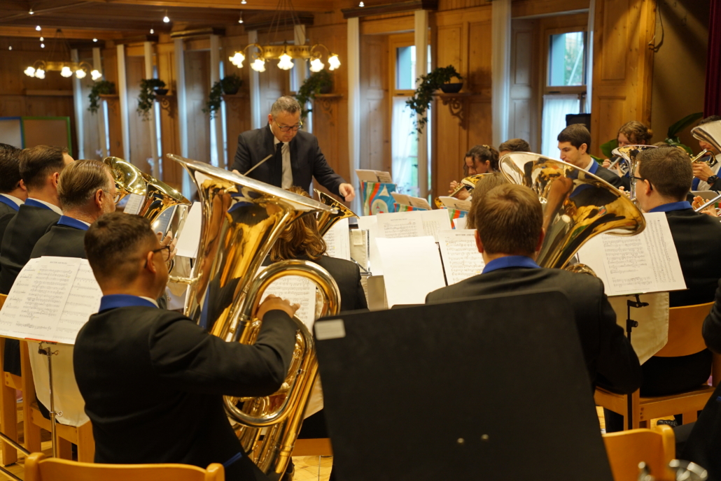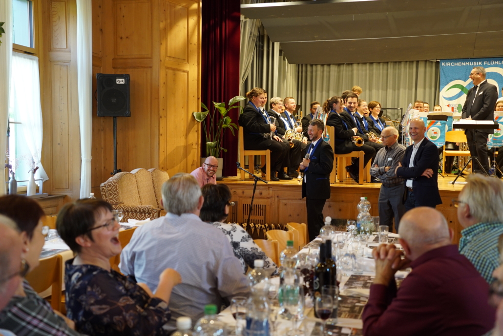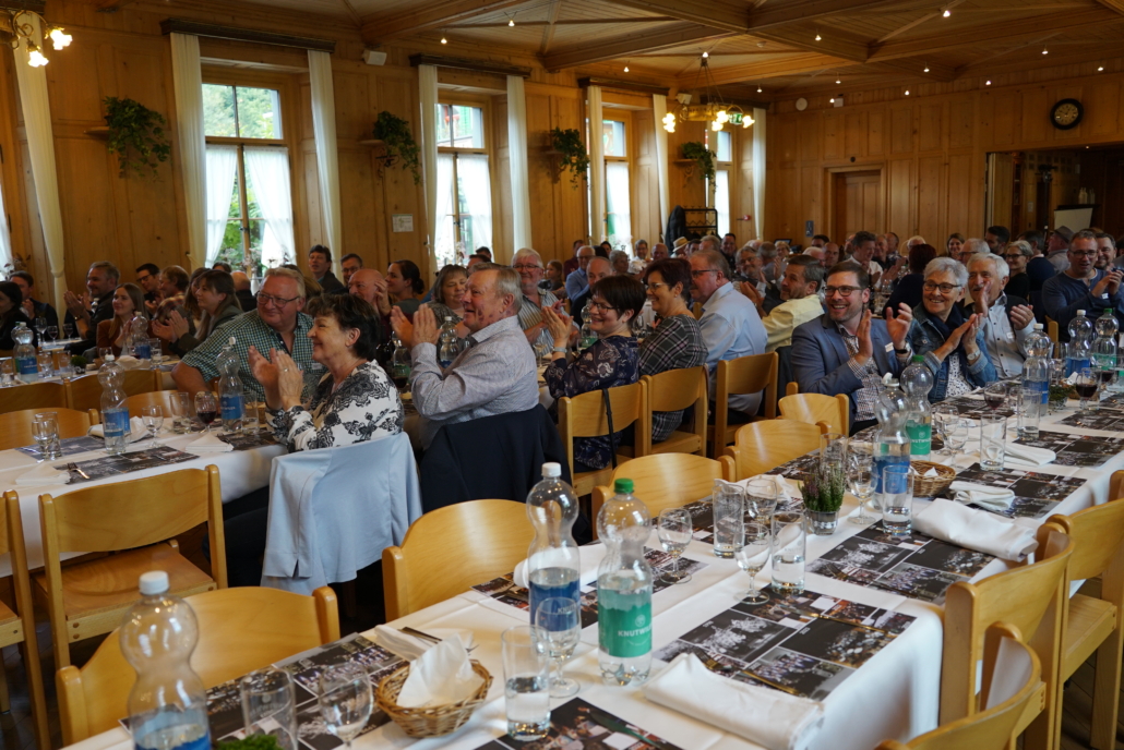 Am Sonntag, 15.Sepember begrüsste Aktivmitglied Roland Distel die Anwesenden im vollen «Kurhaus»-Saal. Er freute sich besonders, dass alle Dirigenten der letzten 55 Jahre dabei sein konnten. Nebst hohem musikalischem Anspruch an Konzerten und Wettbewerben setze die BBKMF seit jeher auf gesellige Anlässe im kameradschaftlichen Rahmen. So beim Fassdouelirennen am Hirsmändig oder am Familienpicknick. Ausserdem engagiere sich der Verein an Anlässen wie der Kaffee-Schnaps-Wanderung oder der Alpabfahrt, sagte er.
