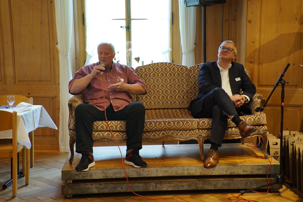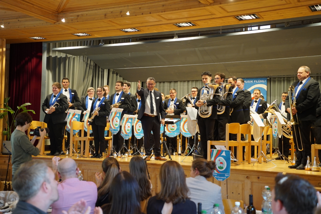 Das Interview mit Hervé Grélat folgte im Anschluss an den Hauptgang. Der Jurassier übernahm im Herbst 2003 als Dirigent. Er nahm den weiten Weg vom jurassischen Porrentruy bis 2013 auf sich und meinte: «Am Anfang war ich mir nicht sicher, ob es eine gute Idee ist.» Doch schon beim Vordirigat habe er gemerkt, was in der Band stecke und sei sofort begeistert gewesen. Er habe sich immer sehr wohl gefühlt «im Flühli». Diese Begeisterung war gegenseitig, denn Grélat führte die BBKMF an vielen Konzerten und zu zahlreichen musikalischen Erfolgen, darunter dem Sieg am Eidgenössischen Musikfest 2006 in Luzern. Seine ruhige Art und das überaus genaue Dirigieren, «fast wie ein Metronom», bleiben in bester Erinnerung.