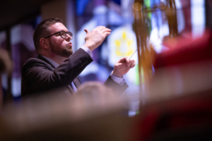Simon dirigiert die BBKMF als Projektdirigent im Herbst 2025.